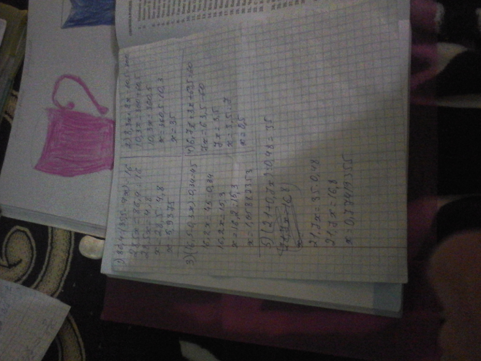 1)86,4:(35,5-7x)=16