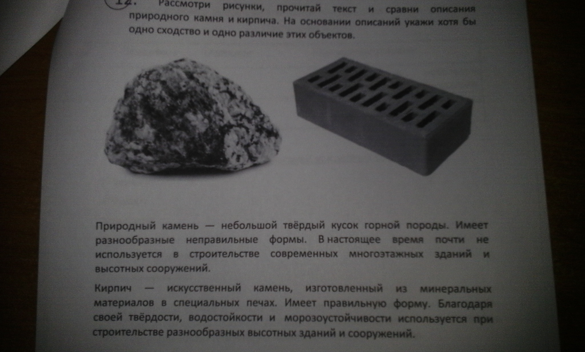2) различия кирпич - правильная форма, используется в строительстве камень - неправильная форма, не используется в строительстве