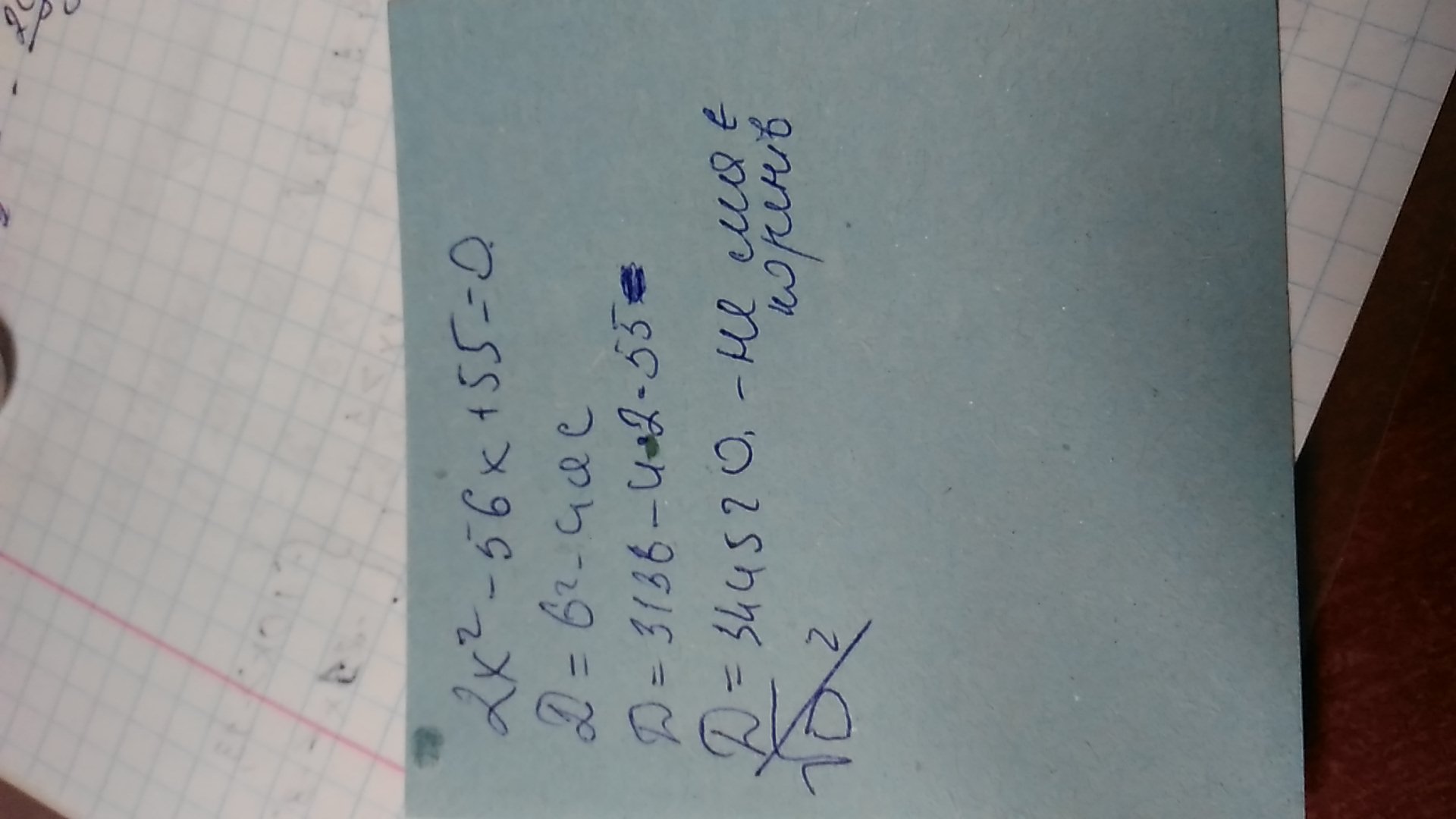 D=56²-4·2·55=3136-440=2696= 4·674=2√674.