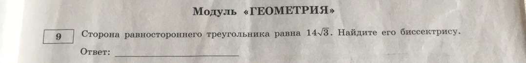 Модуль ГЕОМЕТРИЯ ‚ Сторона равностороннего треугольника равна 1445. Найдите его биссектрису