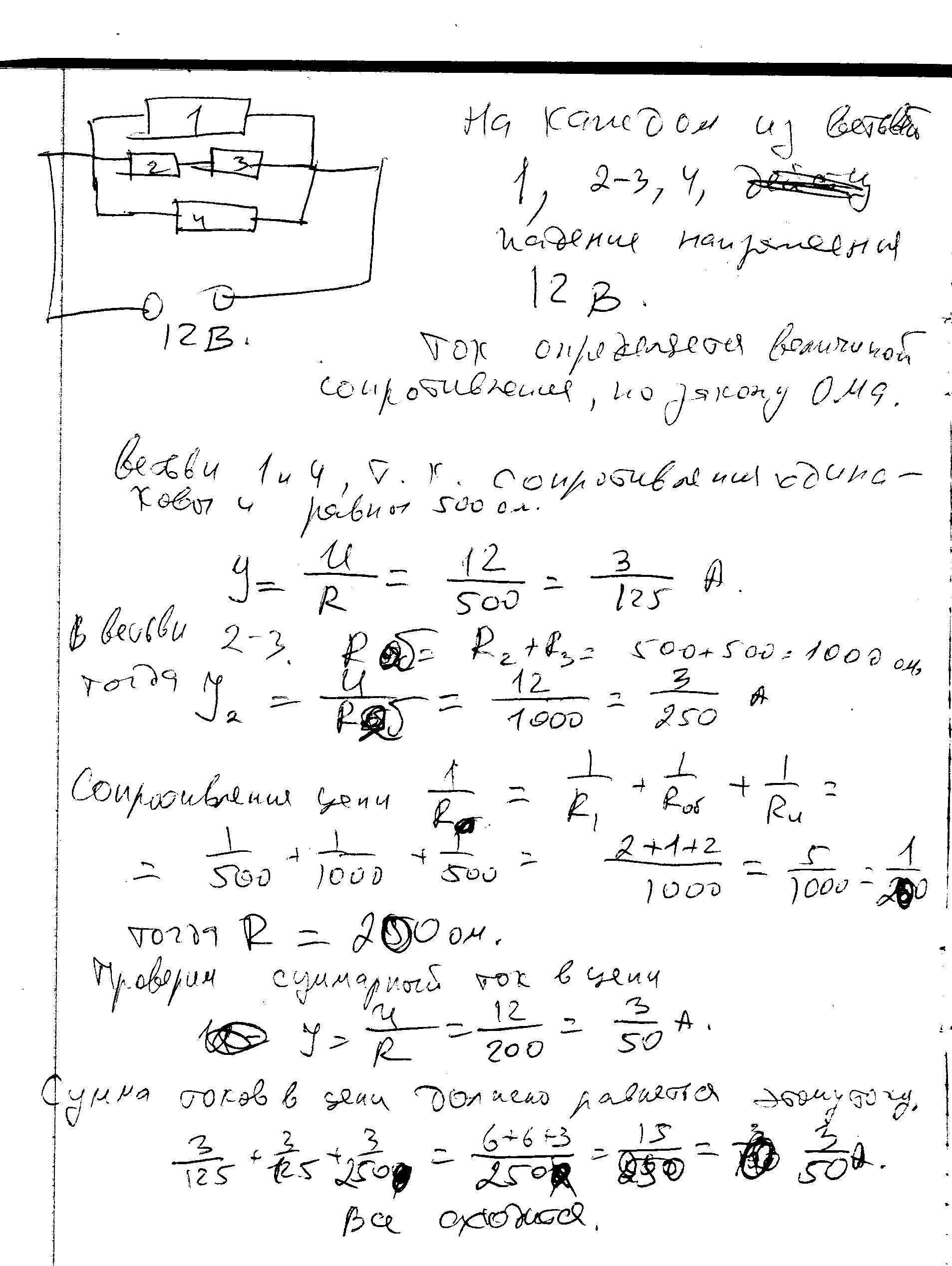 Срочно помогите. Найдите сопротивление в цепи и силу тока в каждом из одинаковых резисторов сопротивлением по 500 ОМ. К цепи приложено напряжение 12 В