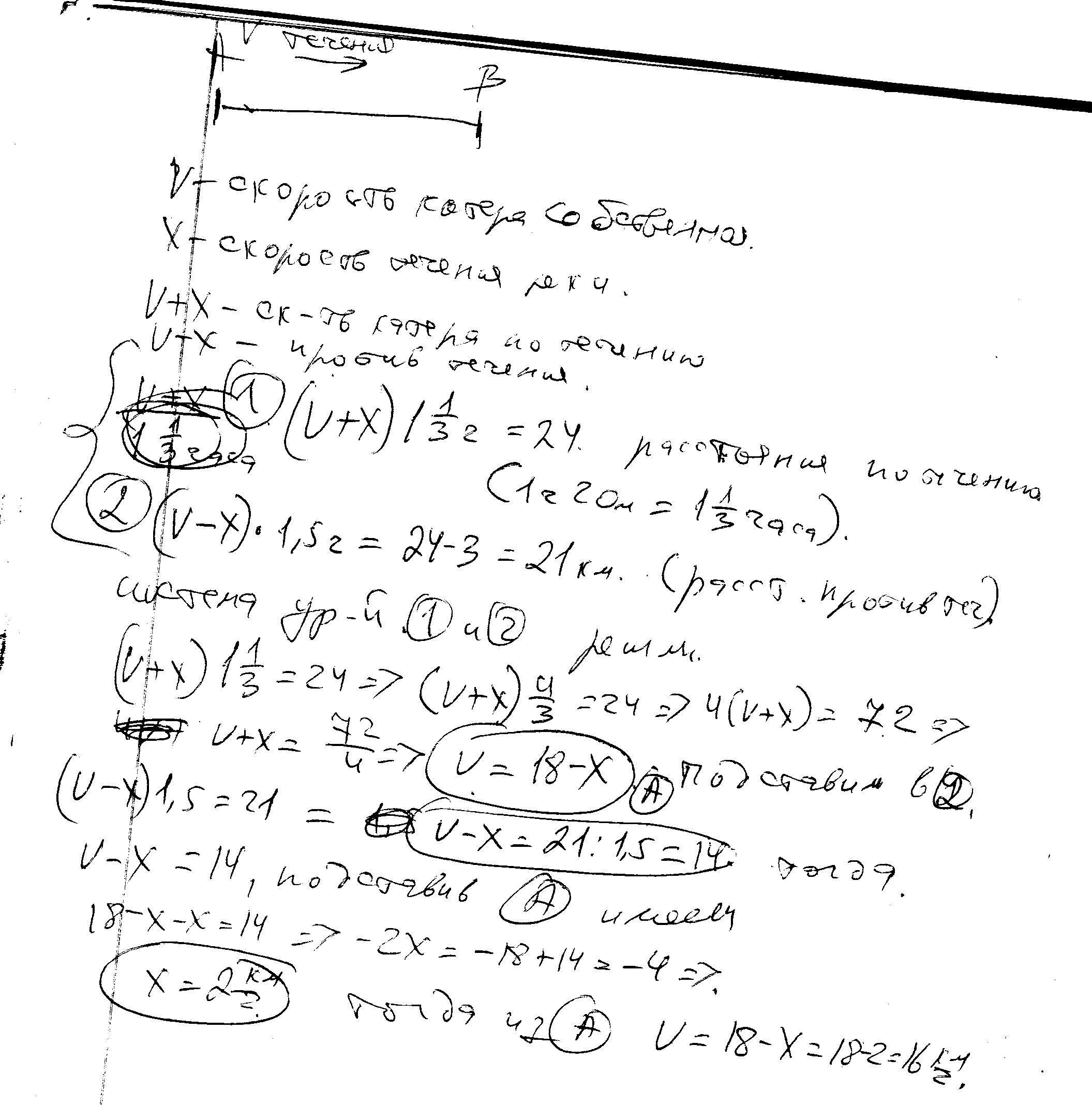 3) решите задачу я вас умоляю:Катер за 1 час 20 минут проплывает по течению реки 24 км,а против течения за 1,5 ч на 3 км меньше,найдите скорость течения реки и собственную скорость катера
