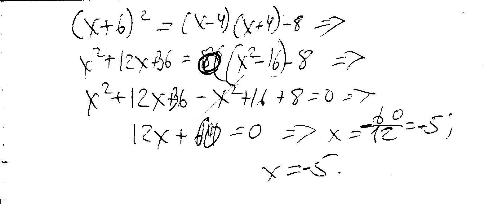 1) решите уравнение:(x+6)в квадрате =(x-4)(x+4)-8