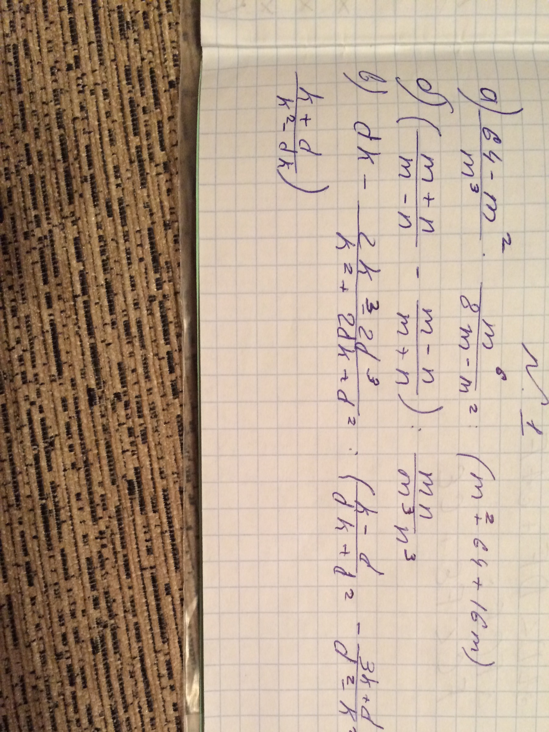 б)1)((m+n)²-(m-n)²)/(m-n)(m+n)=4mn/(m-n)(m+n)