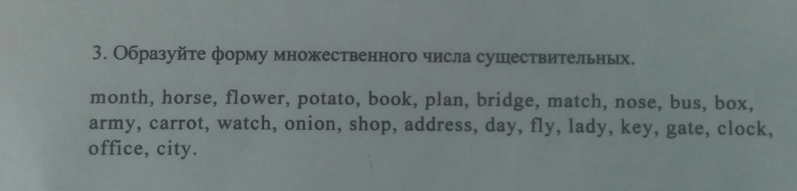 months horses flowers potatoes books plans bridges matches noses buses boxes armies corrots watches onoins shop addressea day flieges ladies keys gates clocks offices cities