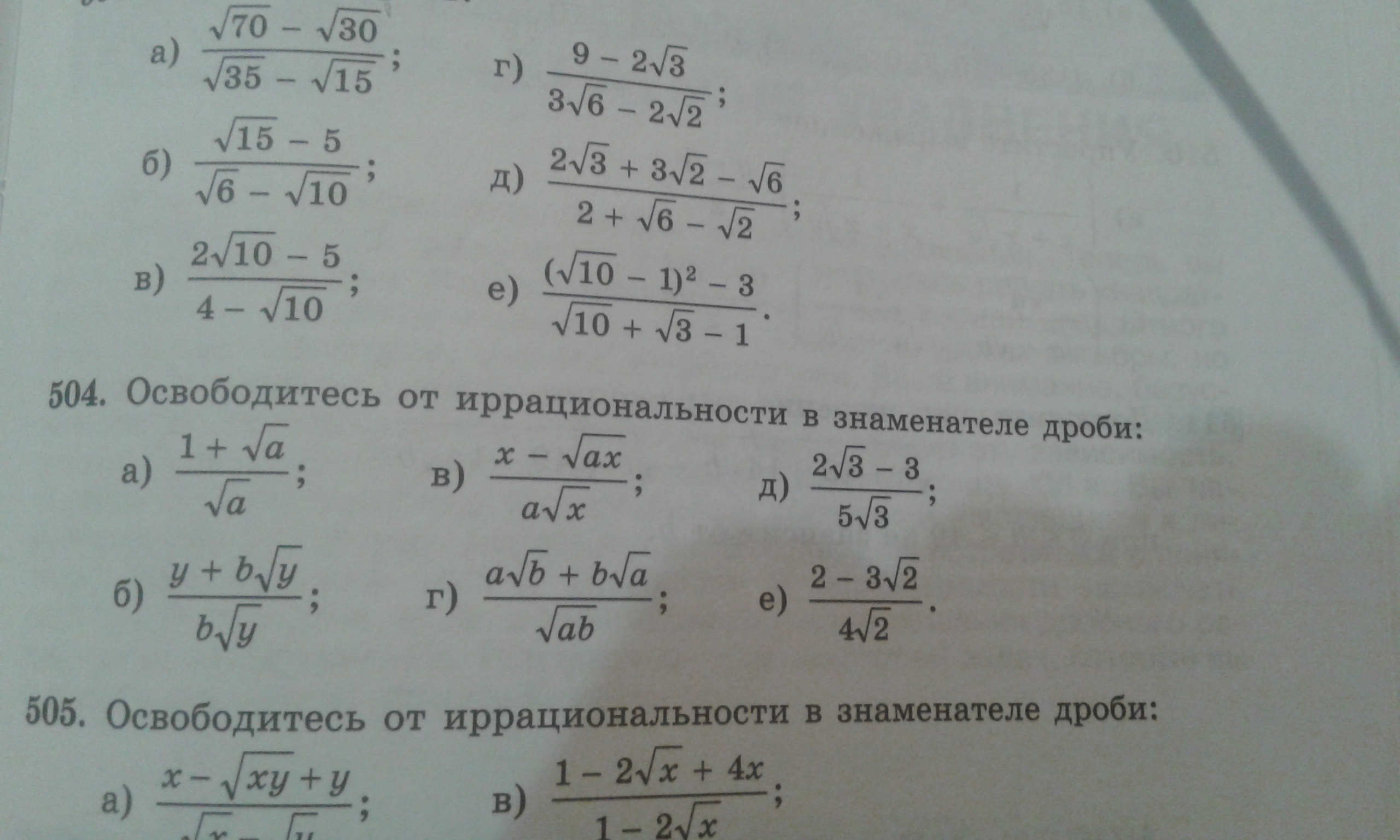 Чтобы избавиться от иррациональности в знаменателе, нужно числитель и знаменатель умножить одновременно на подкоренное выражение, стоящее в знаменателе.