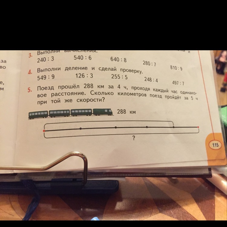 288:4=72<br />72*5=360<br />Ответ:360 км поезд прошёл за 5 часов