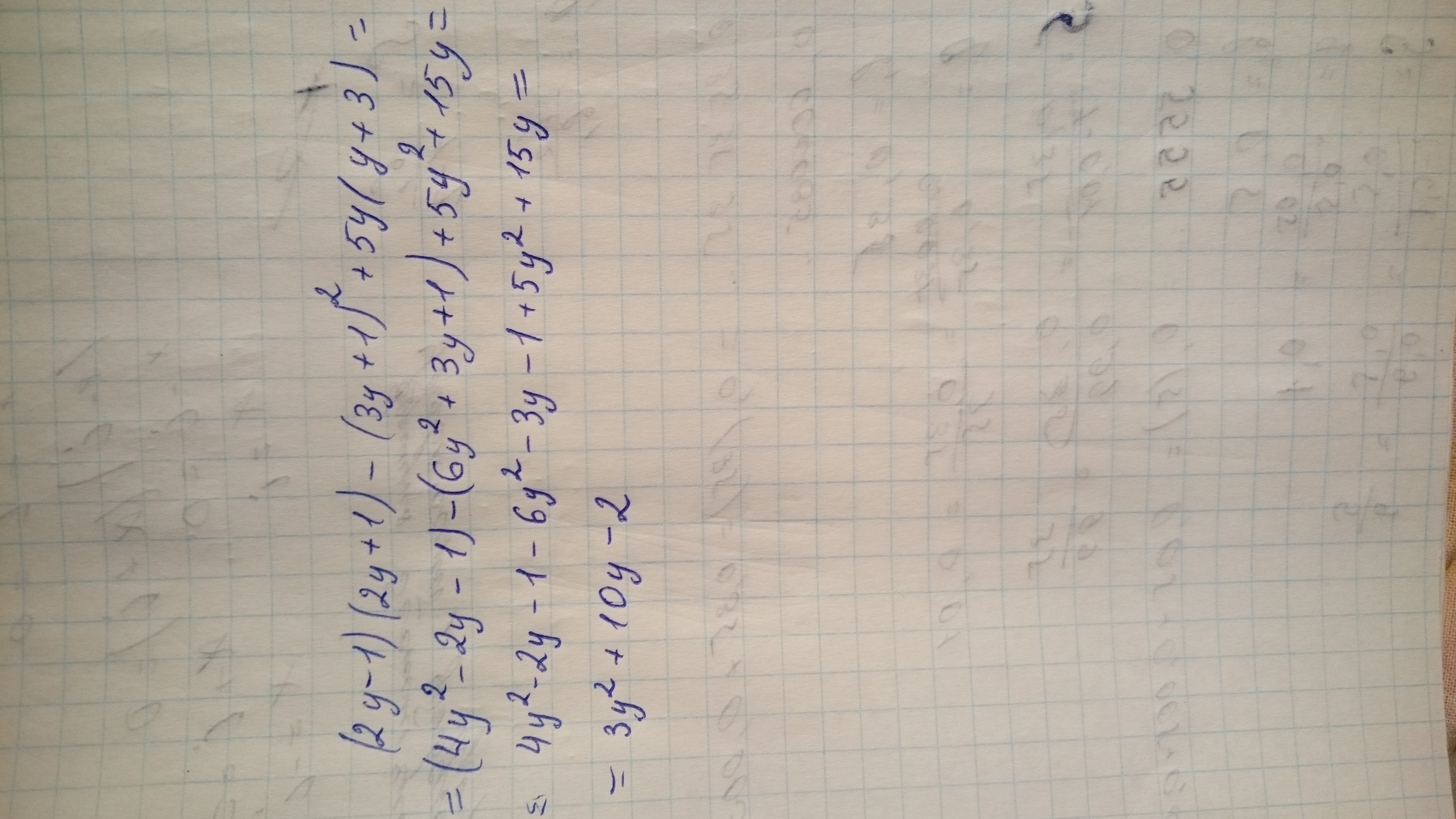 (4у^2-2у-1)-(6у^2+3у+1)+5у^2+15у=4у^2-2у-1-6у^2-3у-1+5у^2+15у=3у^2+10у-2