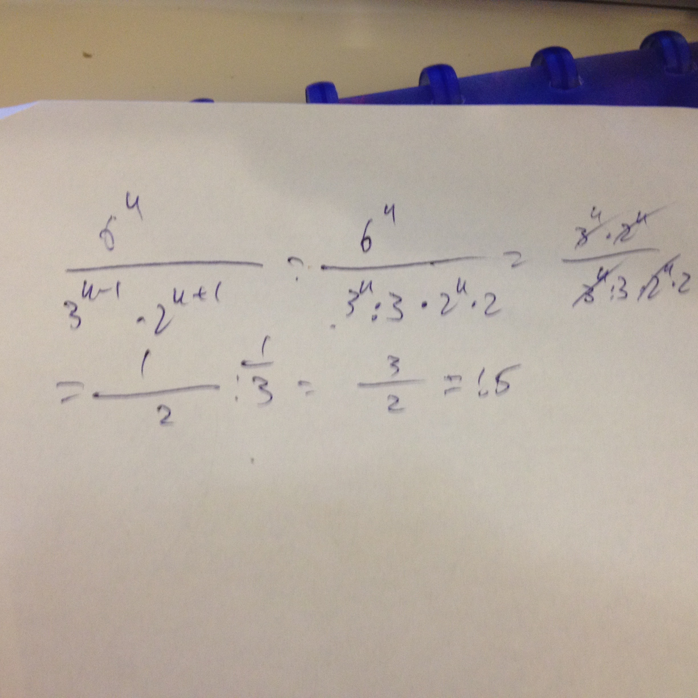 (3^n *2^n) /(3^n*2^n*2)/3 =1/2/3 =1 : 2/3 =1 * 3/2 =3/2 =1.5
