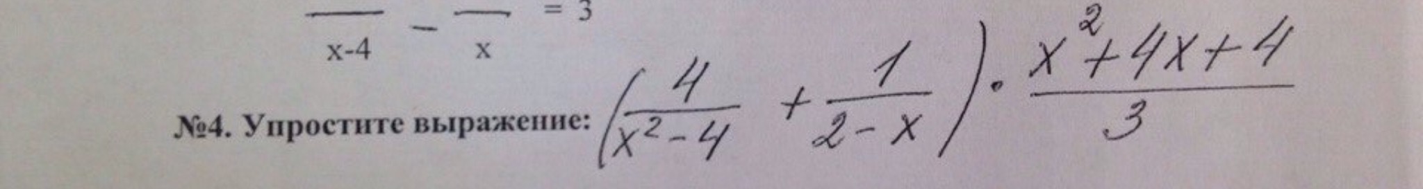 (4/(x²-4) + 1/(2-x)).(x²+4x+4)/3=