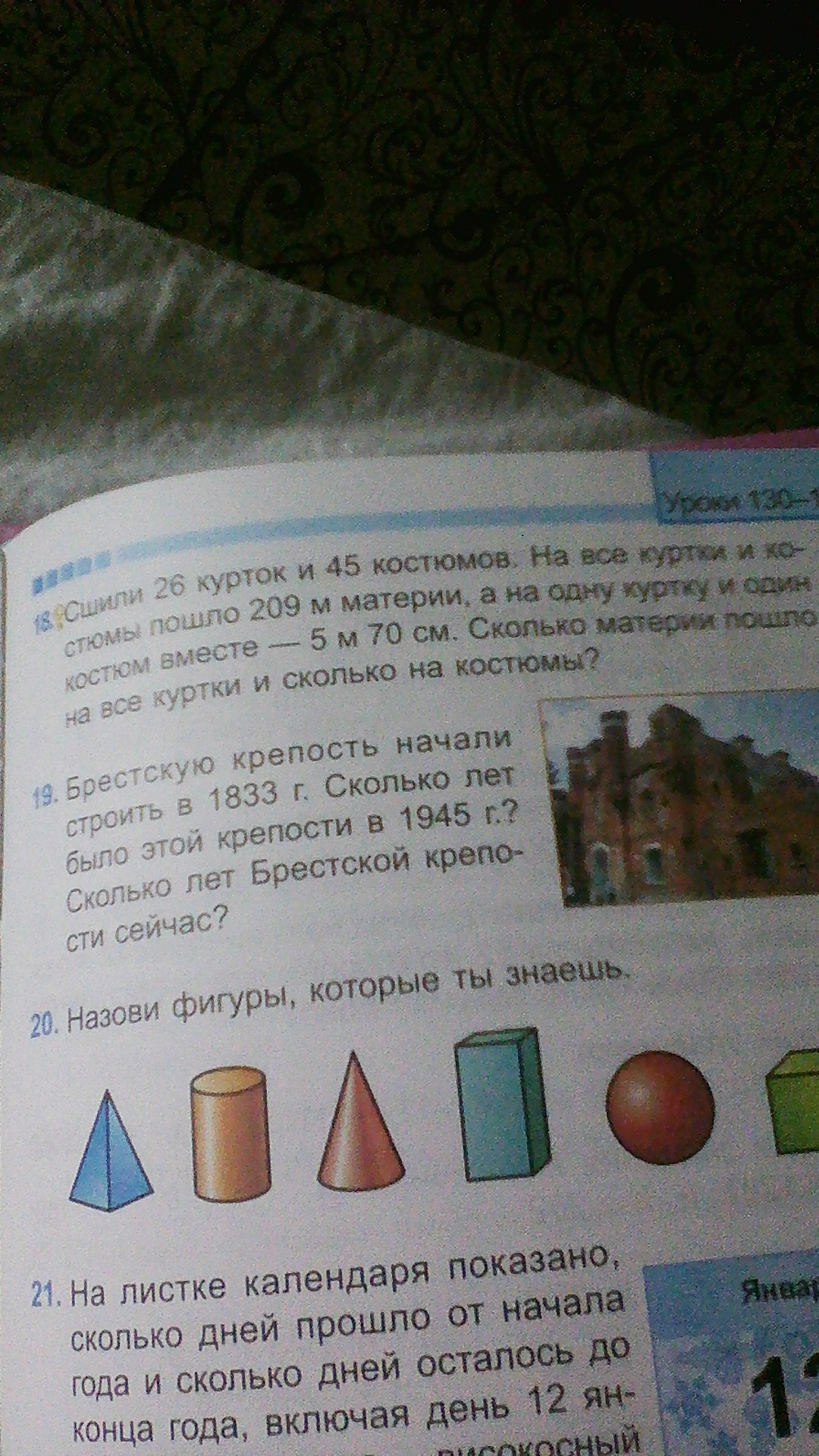 1.)5,70*26= 148,20(м)- пошло на 26курток и 26 костюмов<br />2)209-148,2=60,8(м)осталось сткани<br />3)45-26=19(кост) осталось пошить.<br />4)60,8:19=3,2(м) потрачено на 1 костюм<br />5)5,7-3,2=2,5(м) потрачено на 1 куртку<br />6)2,5*26=65(м) ткани потрачено на куртки<br />7)3,2*45=144(м)ткани потрачено на костюмы