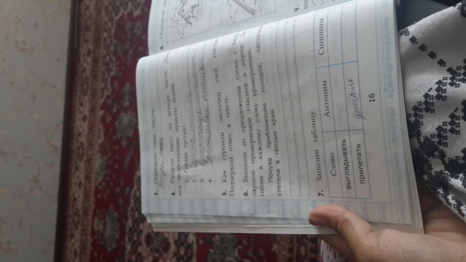 7) антоним к слову выглядывать-заглядывать,синоним глядеть.антлоним к слову лететь -падает-стоит синоним лететь
