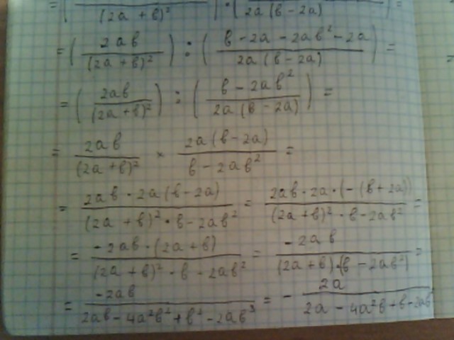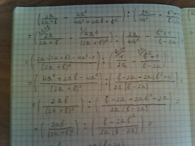 упростите данные выражения:(2a/2a+b - 4a^2/4a^2+4ab+b^2) : (2a/4a^2-b^2 +1/b-2a)