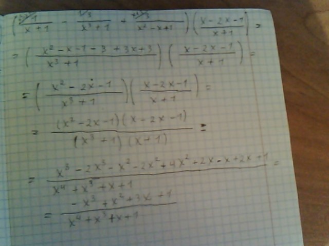 (1/x+1 - 3/x^3+1 + 3/x^2-x+1)(x - 2x-1/x+1) помогите сделать пожалуйста)еще может поможет во втором равен 1