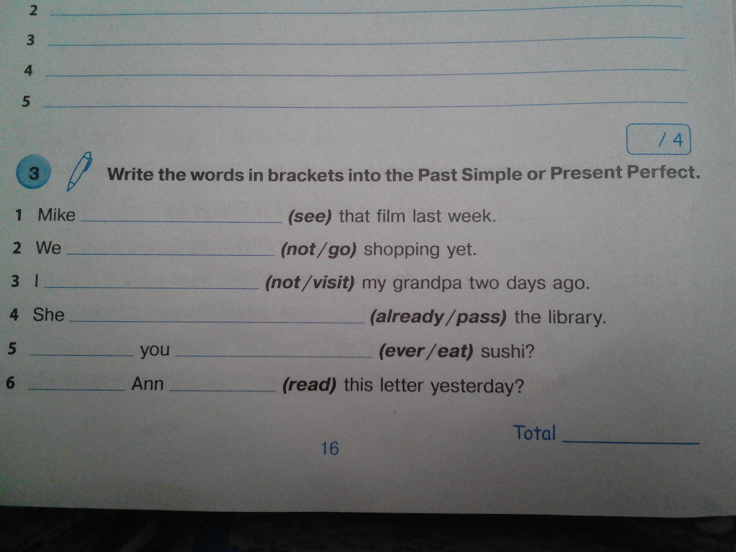 6 Did Ann read this letter yesterday?