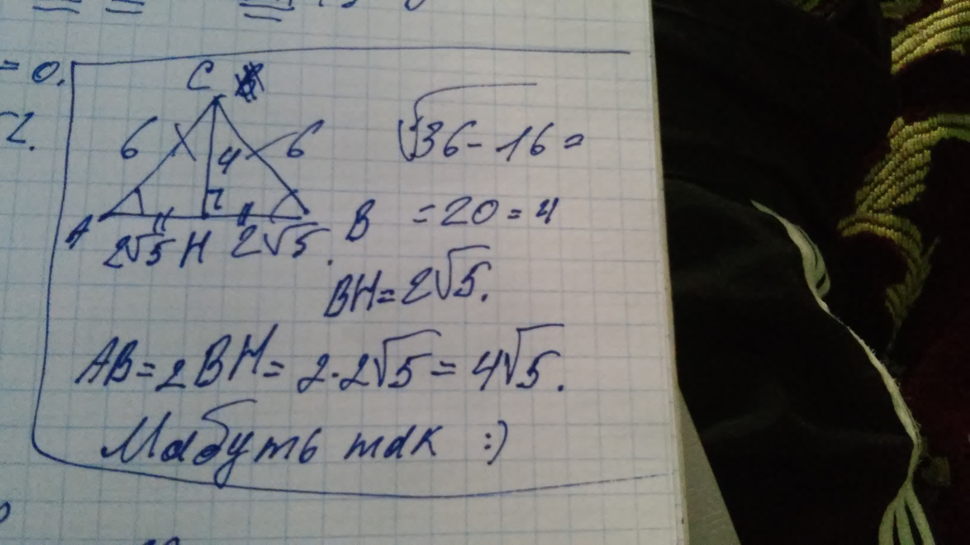 а уся основа: 2*(2*5^(1/2))=4*5^(1/2), якщо будуть питання, можу скинути рiшення...
