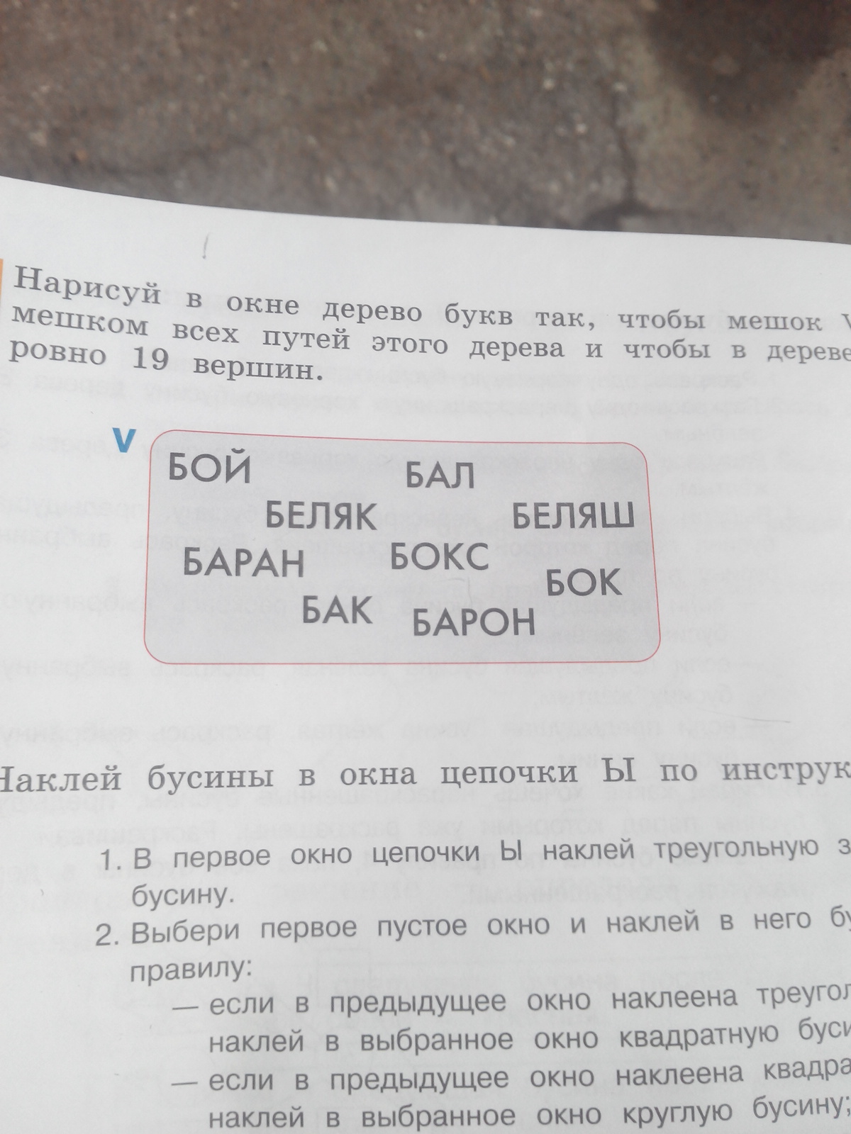 нарисуй в окне дерева букв так чтобы мешок V был мешком всех путей этого дерева и чтобы в дереве было ровно 19 вершин.