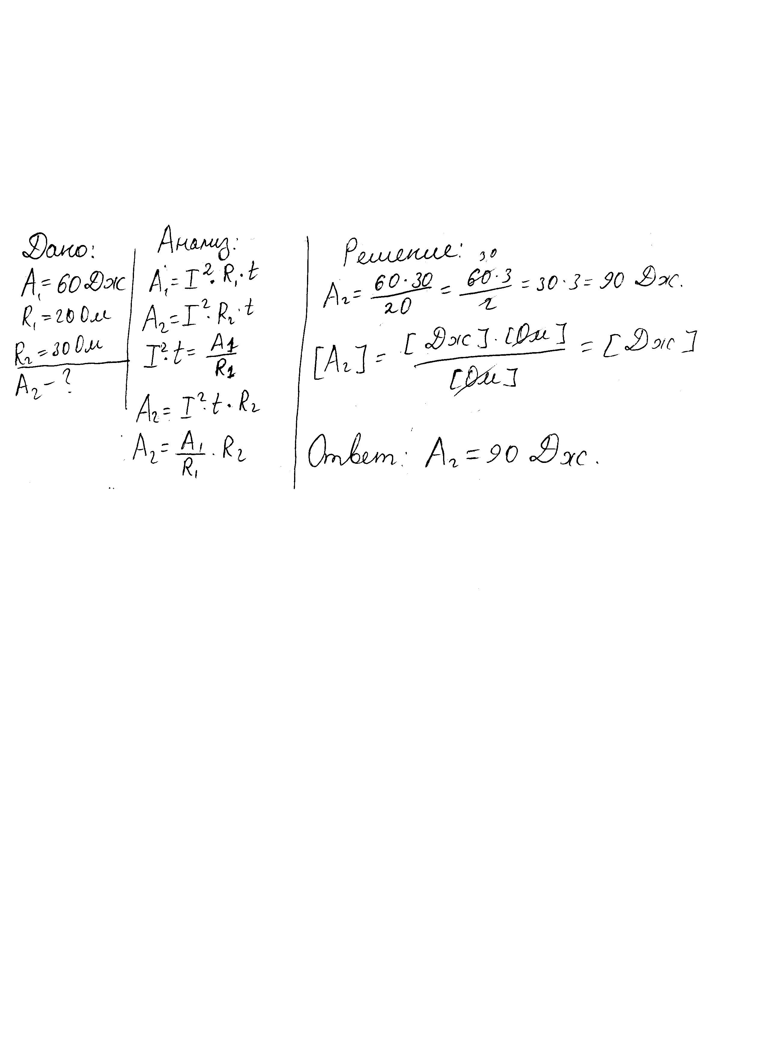 Два проводника сопротивление которых 20 Ом и 30 ОМ, соединяют последовательно и подключают к источнику тока. В первом выделилось 60 дж теплоты. Какое количество теплоты выделилось во втором проводнике за это же время? ОФОРМИТЕ ВСЁ КАК ПОЛОЖЕНО С ДАНО СИСТЕМОЙ СИ, ФОРМУЛАМИ И РЕШЕНИЯМИ.