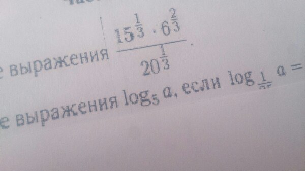 frac{15^{ frac{1}{3} }*6^{ frac{2}{3} }}{20^{ frac{1}{3} }} = frac{ sqrt[3]{15}* sqrt[3]{6^2}  }{ sqrt[3]{20}} = frac{ sqrt[3]{5*3*4*9} }{ sqrt[3]{20} } = frac{ sqrt[3]{20}* sqrt[3]{27} }{ sqrt[3]{20}} = sqrt[3]{27} =3