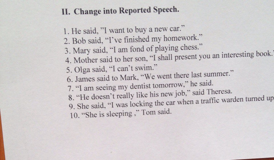 1. He said that he wanted to buy a new car.