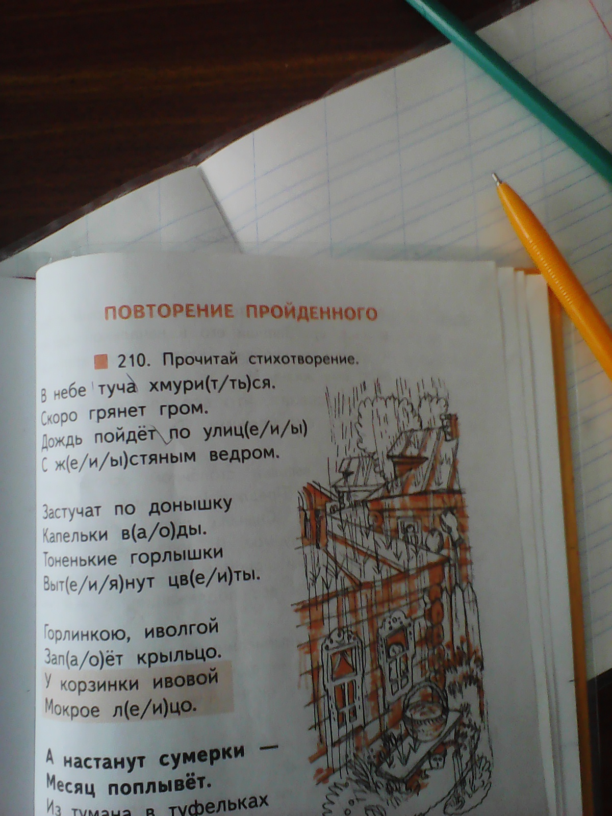 Глаголы настоящего времени - хмурится.