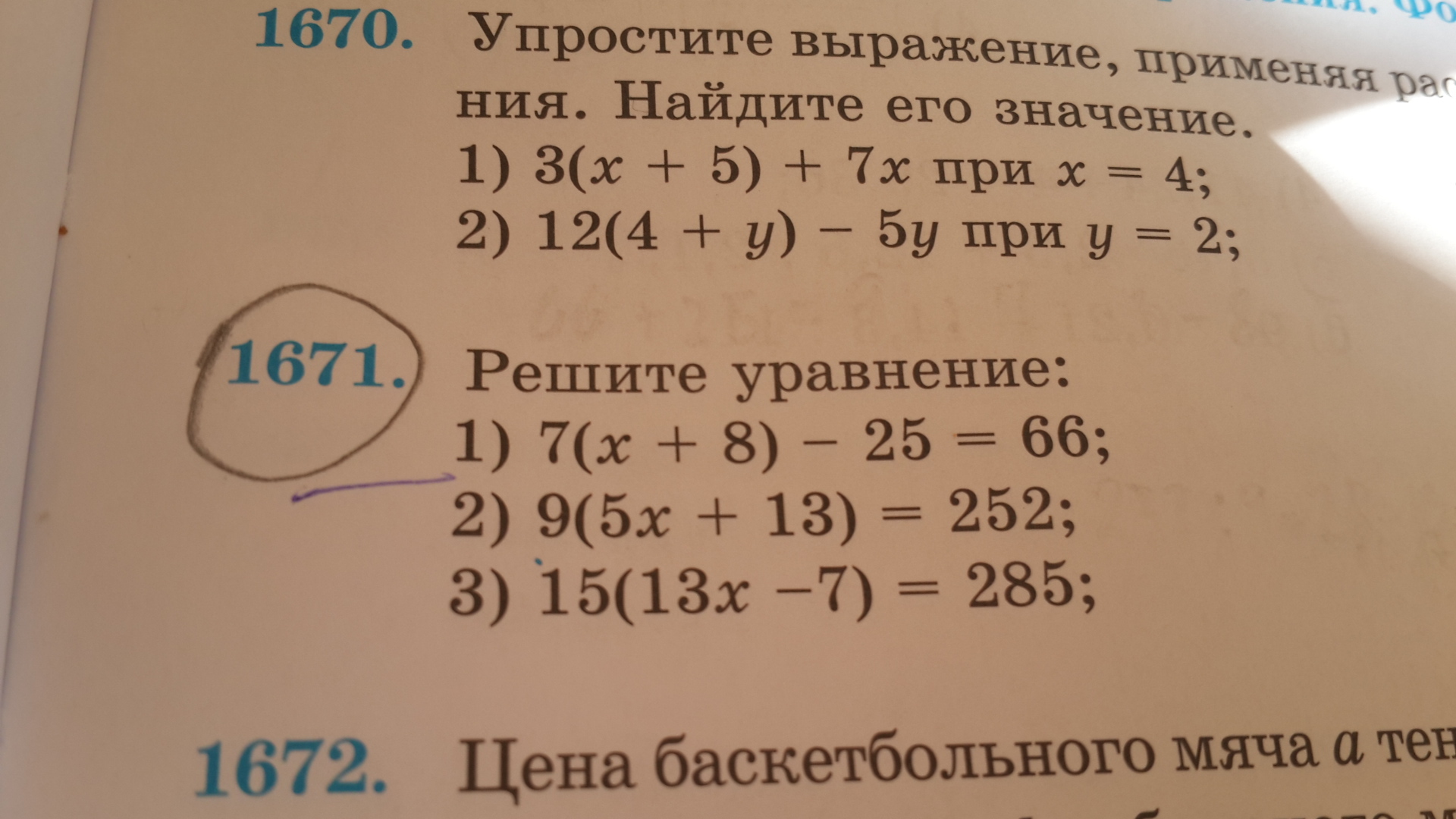 7(x+8)-25=66. 9(5x+13)=252