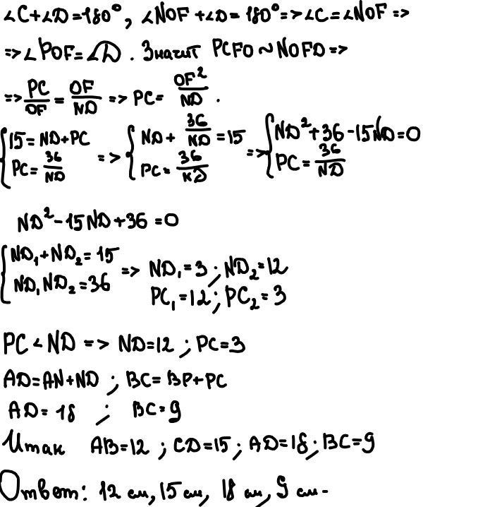 около окружности описана прямоугольная трапеция найдите стороны трапеции если её периметр равен 54 см а радиус 6 см