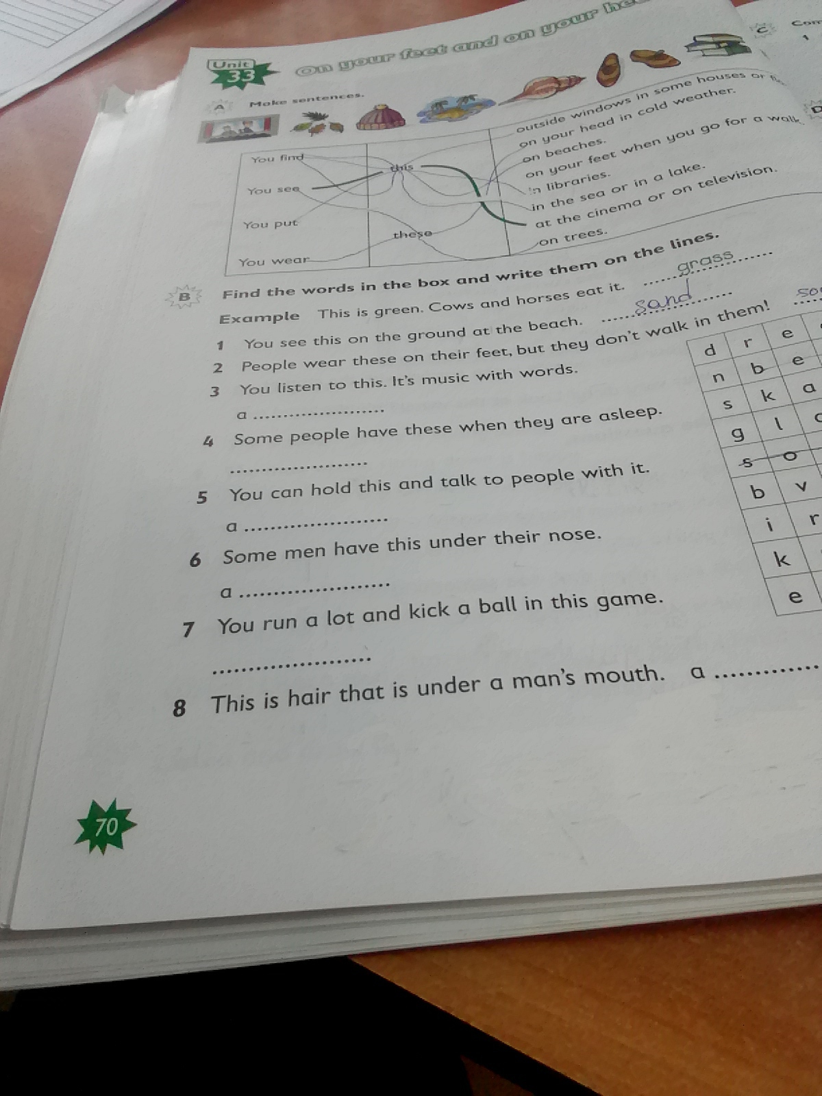 3 A song. 4 insomnia (бессоница,возможно не прав) 5 phone 6 catkin (сережка,тоже возможно не прав) 7 Football 8 beard (борода)