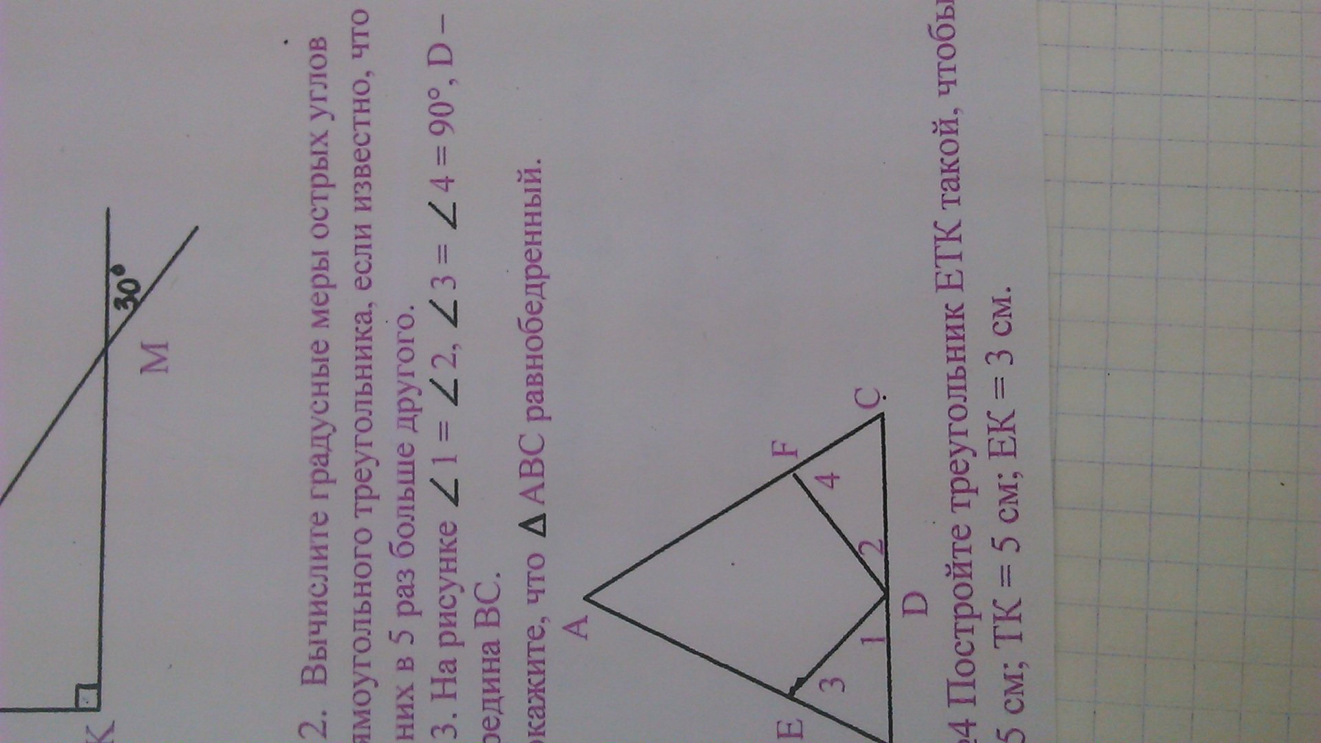 Т.к. это прямоугольный треугольник, то один угол = 90"