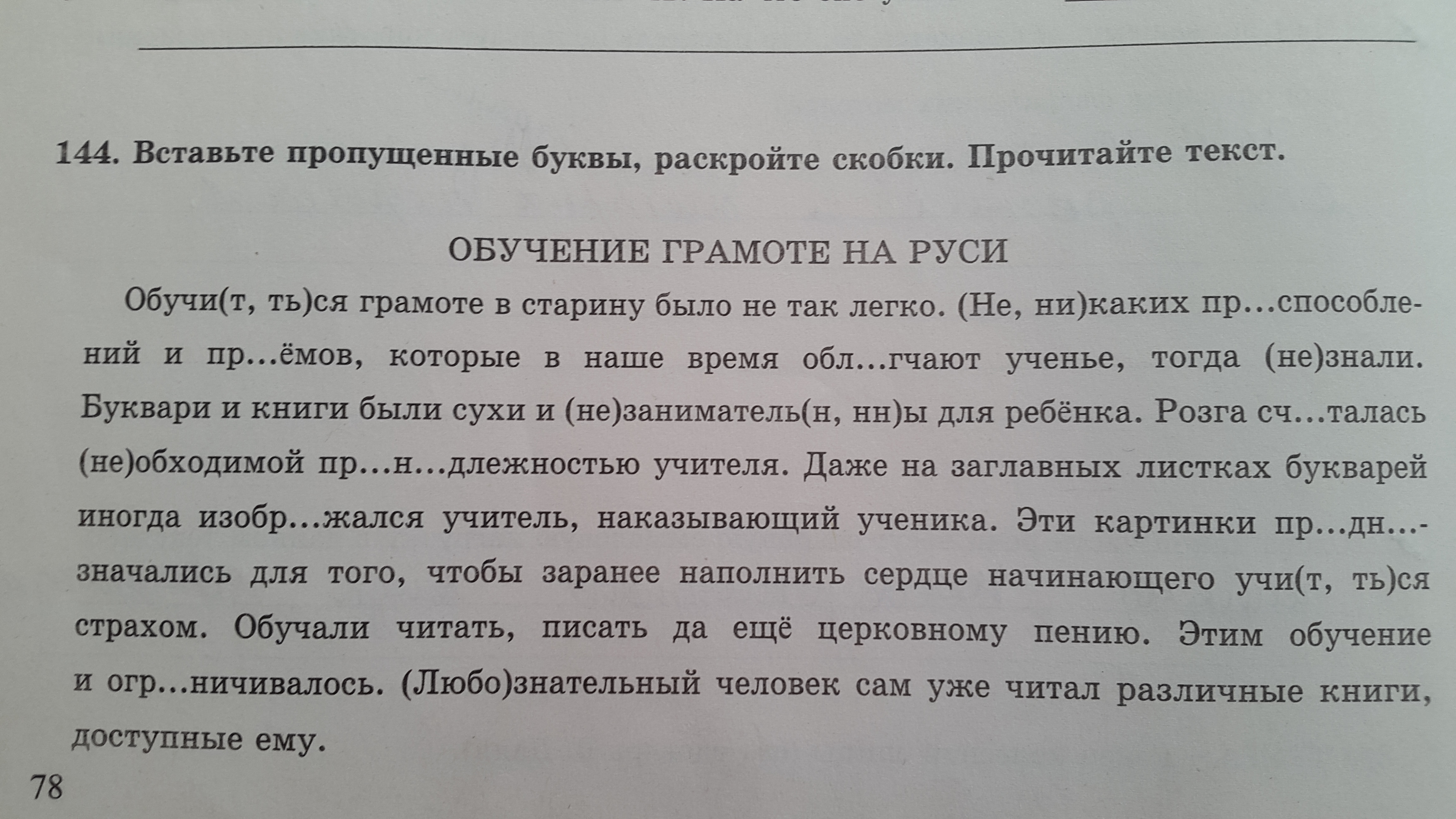 Обучиться грамоте в старину было не так легко. Никаких приспособлений и приём, которые в наше время облегчают ученье, тогда не знали. Буквари и книги были сухи и незанимательны для ребенка. Розга считалась необходимой принадлежностью учителя. Даже на заглавных листках букварей иногда изображался учитель, наказывающий ученика. Эти картинки предназначались для того, чтобы заранее наполнить сердце начинающего учиться страхом. Обучали читать, писать да ещё церковному пению. Этим обучение и ограничивалось. Любознательный человек сам уже читал различные книги, доступные ему.