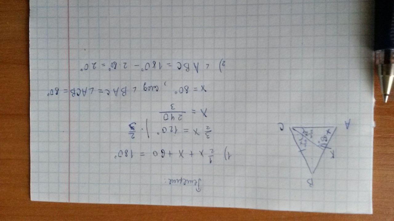 В равнобедренном тр-ке ABC с основанием AC проведена биссектриса CK . Найдите углы тр-ка ABC , если угол AKC=60 градусов
