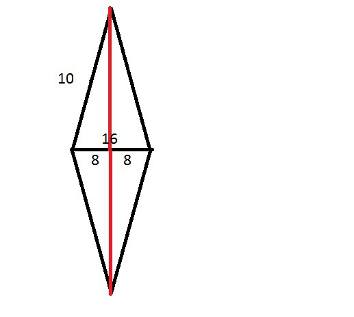 √(10²-8²)=√(100-64)=√36=6 дм-половина второй диагонали