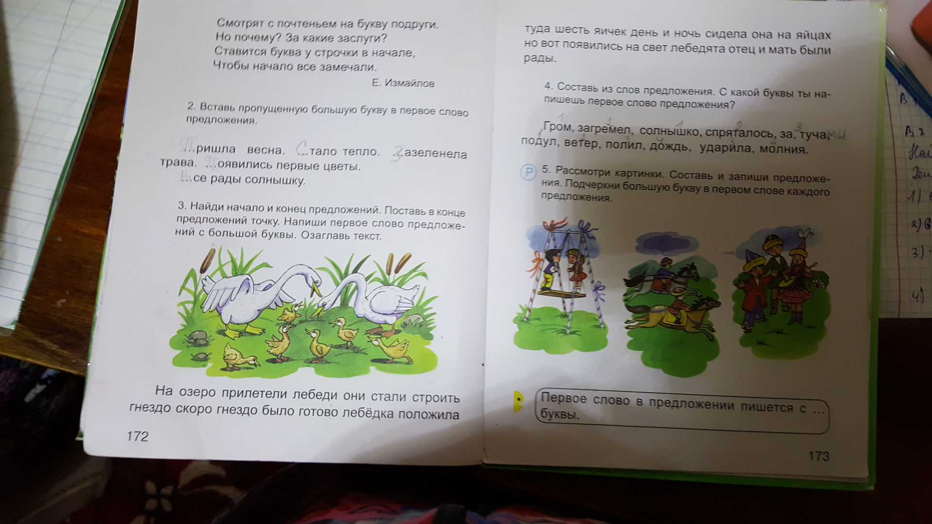 На...прилетели лебеди. Они...гнездо. Скоро...готово. Лебедка положила