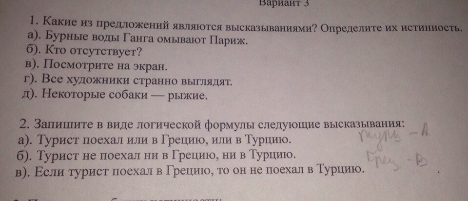 А — Турист поехал в Турцию, В — Турист поехал в Грецию.