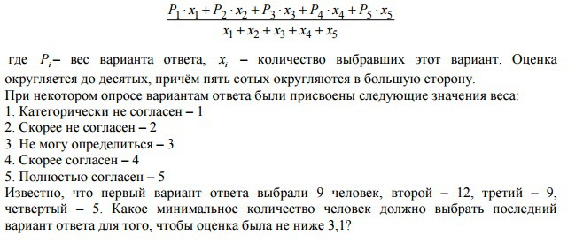 Взвешенная средняя оценка социологического опроса с пятью вариантами ответа