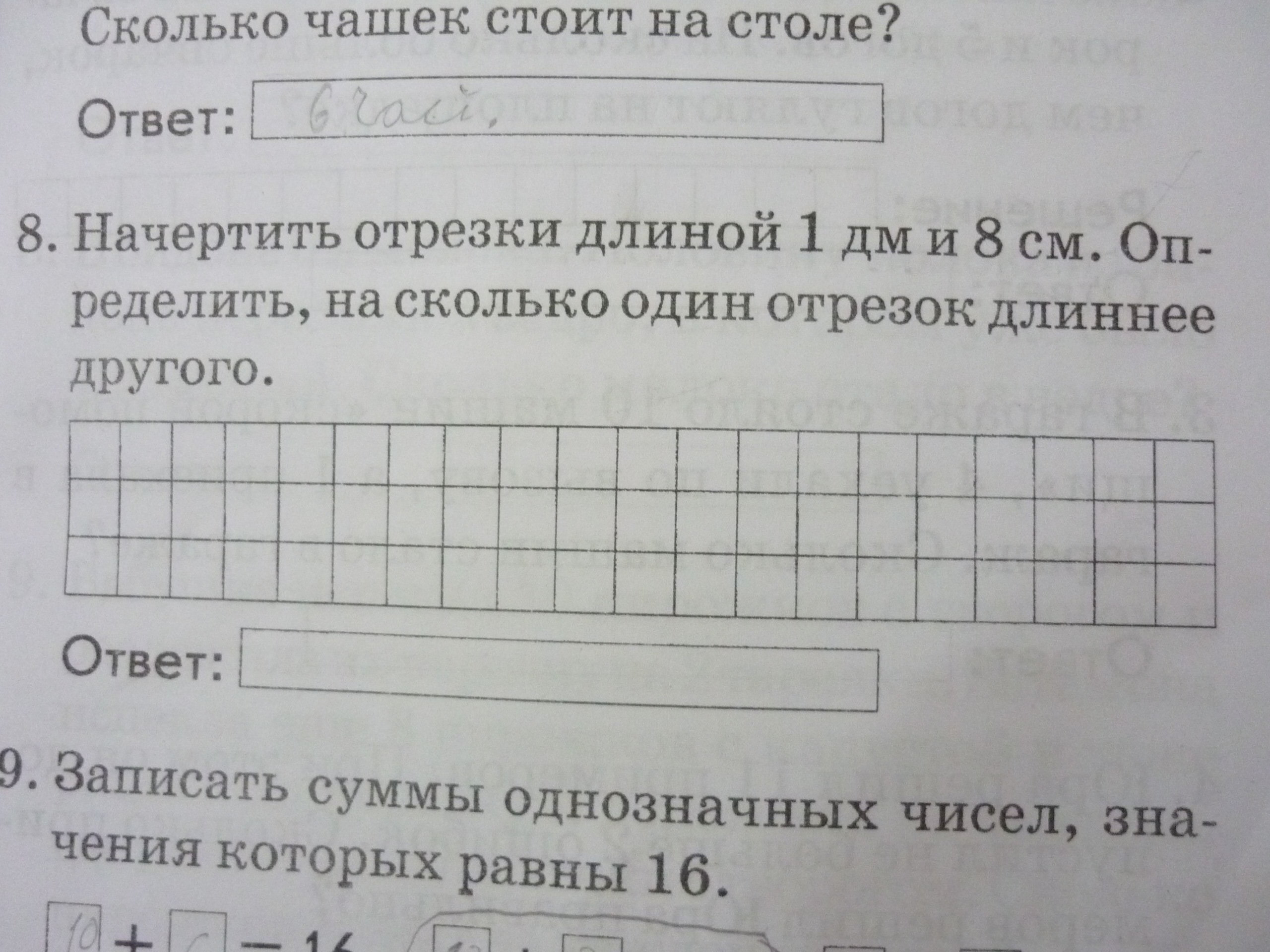 ты потом из 10 вычитаешь 8 ,и у тебя получается на 2 см, один длиннее другого