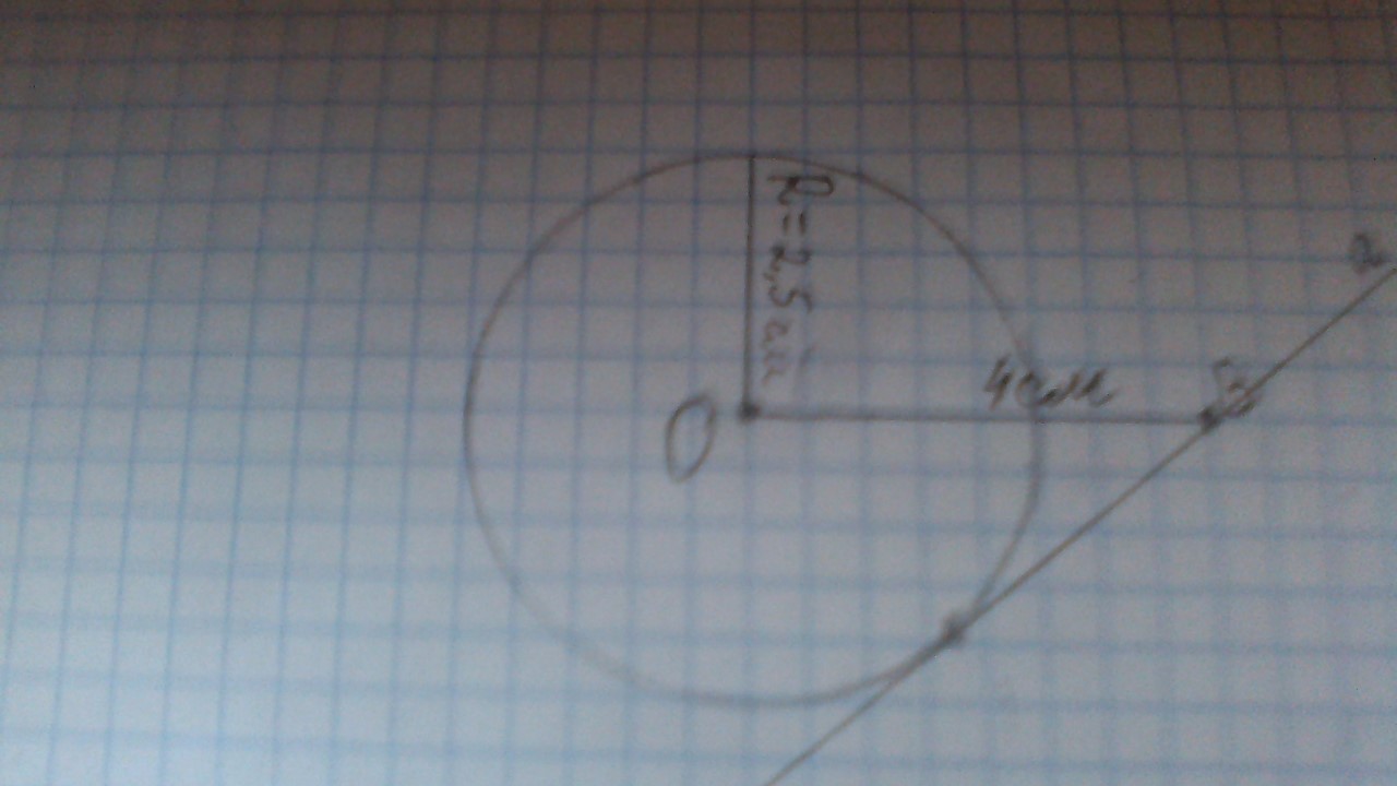 постройте окружность радиус которой равен 2,5 см отметьте точку B удаленую от центра на 4 см и проведите через нее касательную к окружности