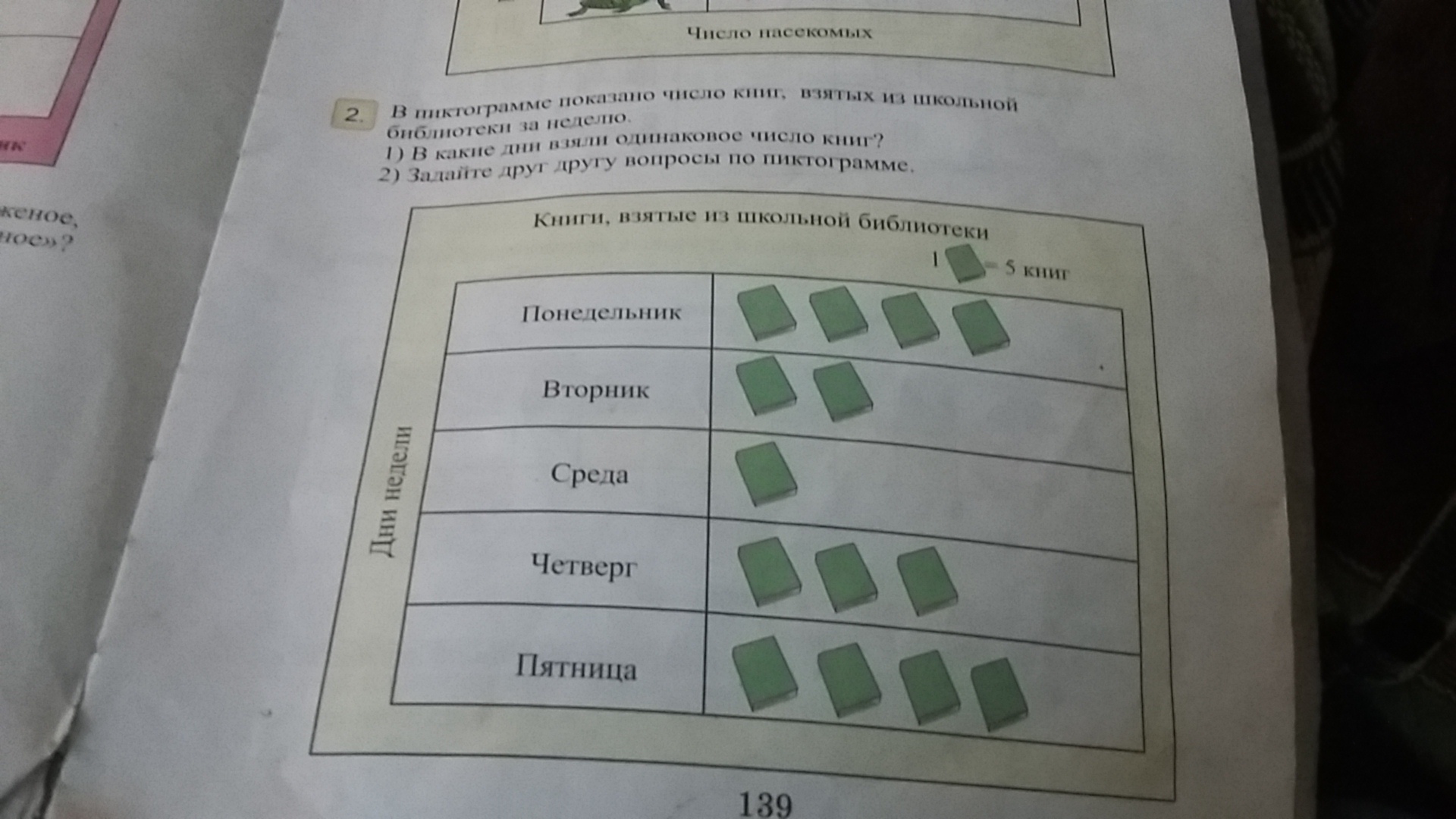 1.Сколько всего книг взяли из школьной библюиотеки за неделю?