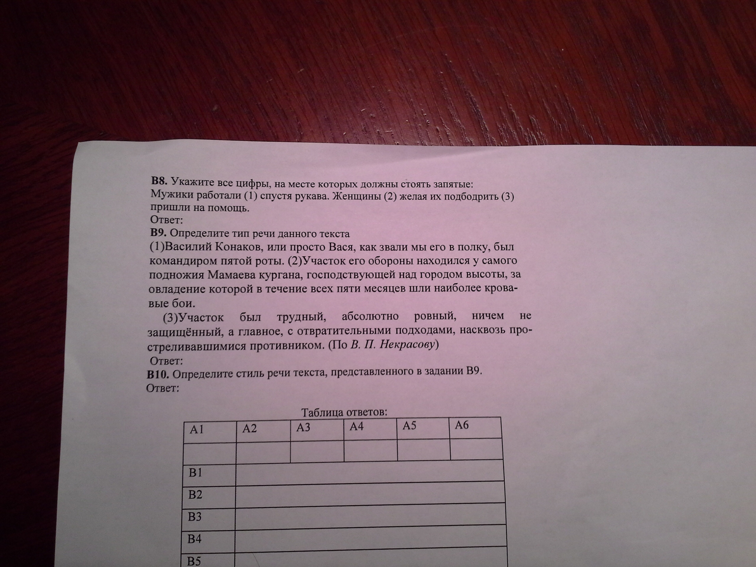 В8. Ответы 23. В9 - повествование с элементами описания. В10 - художественный