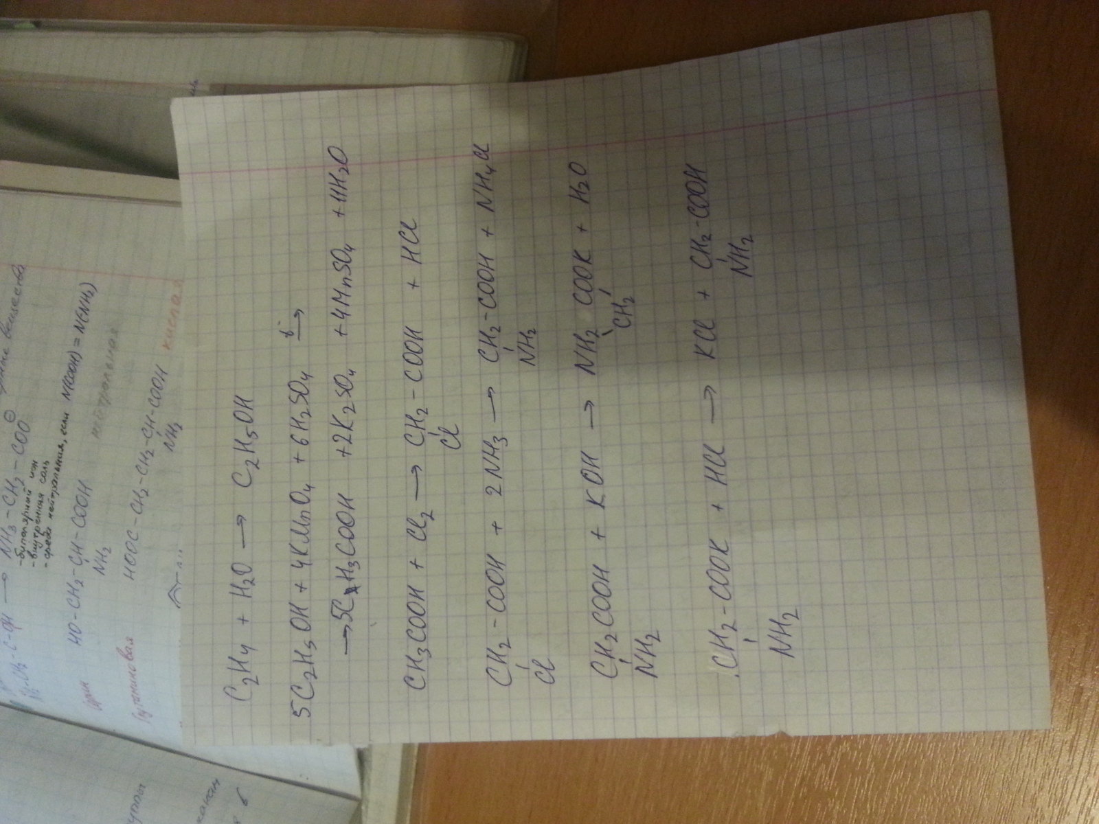 этан - этанол - этановая кислота - 2-хлорэтановая кислота - 2-аминоэтановая кислота - калиевая соль - 2-аминоэтановая кислота