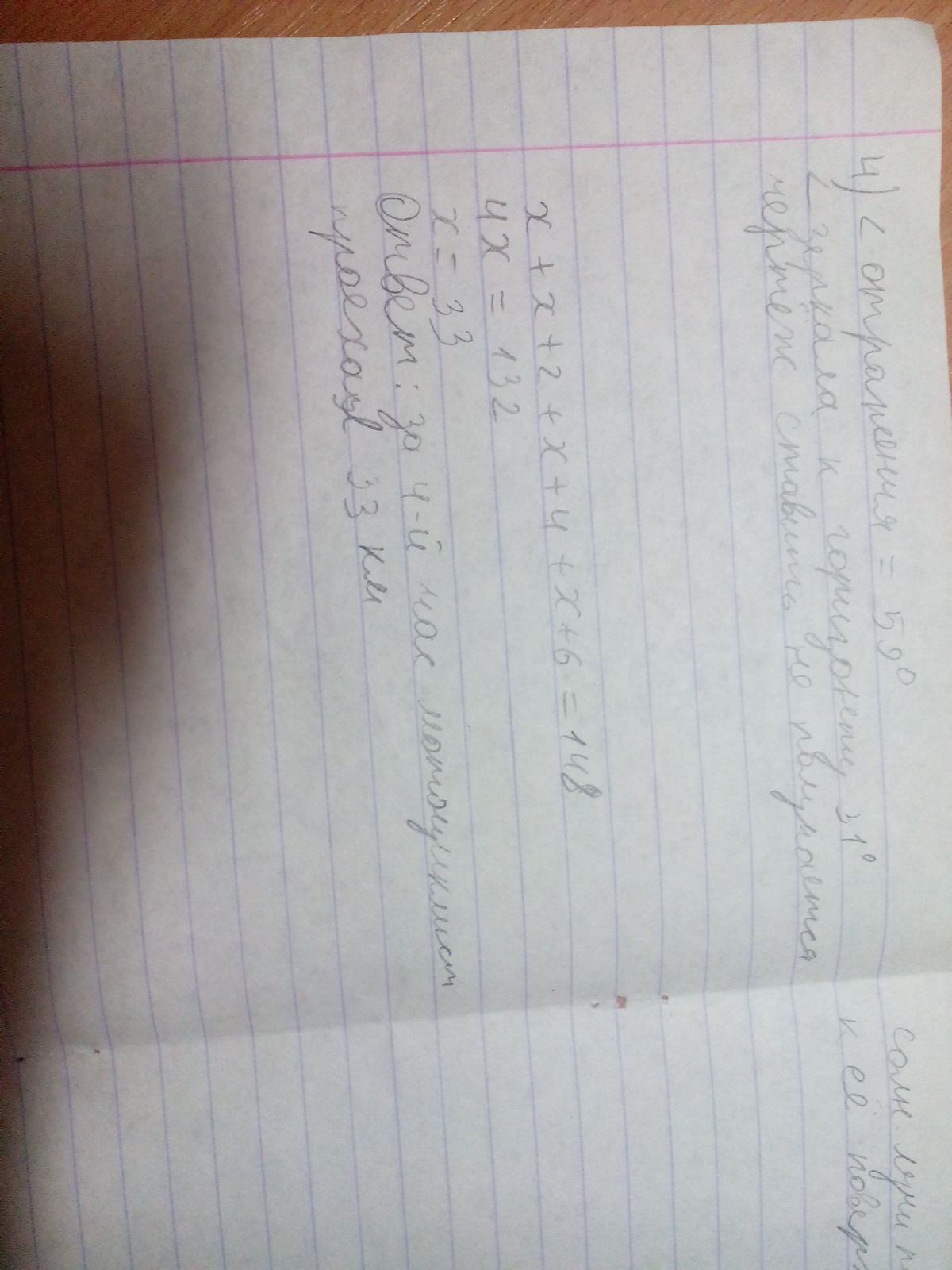 мотоциклист за 4 ч проехал 148 км.проезжая за каждый час на 2 кс меньше ,чес за предыдущий. Сколько километров проехал мотоциклист за четвертый час?