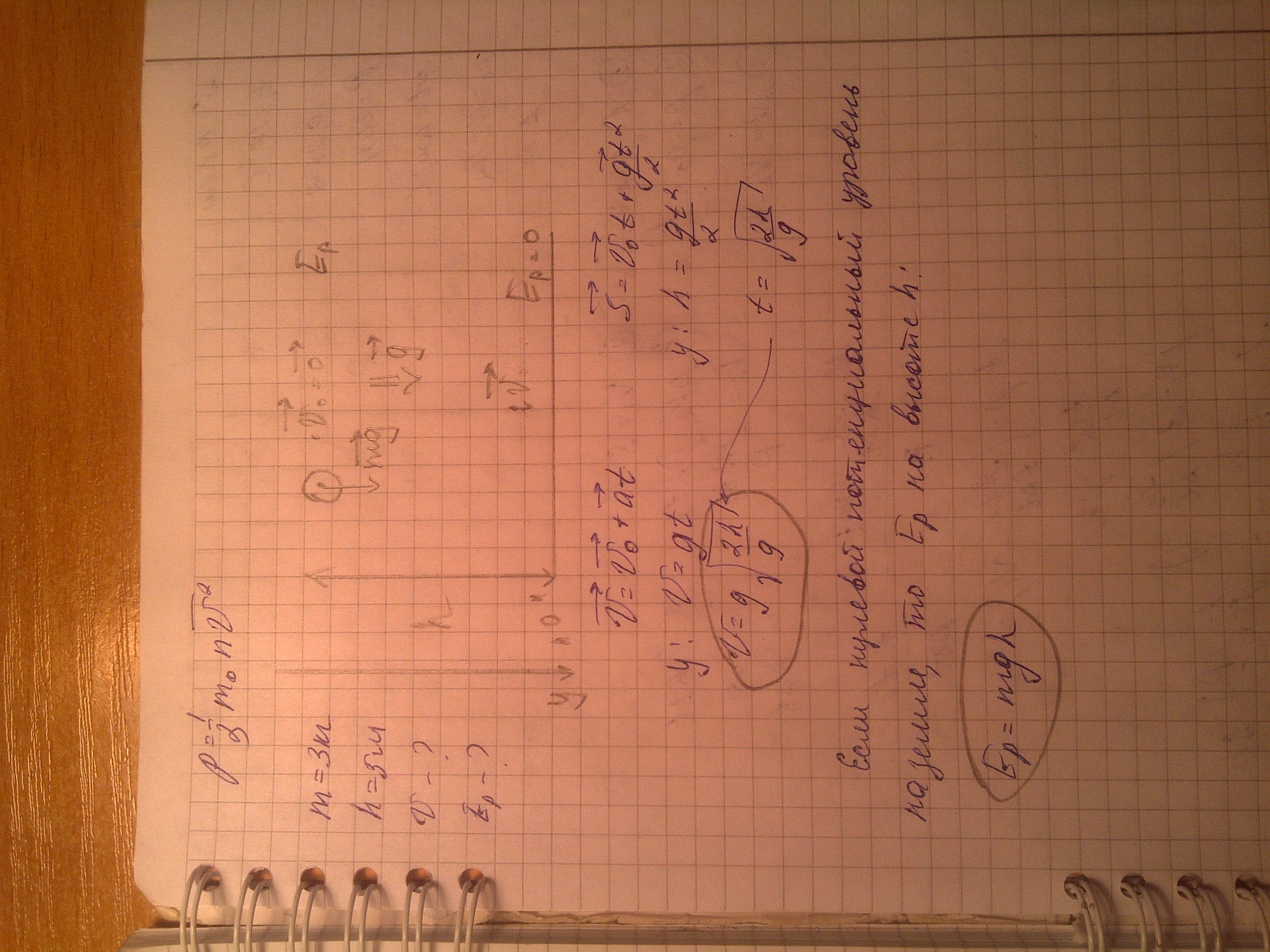 Тело массой 3 кг свободно падает с высоты 5 м . Определите потенциальную энергию тела и скорость тела в конце пути ?
