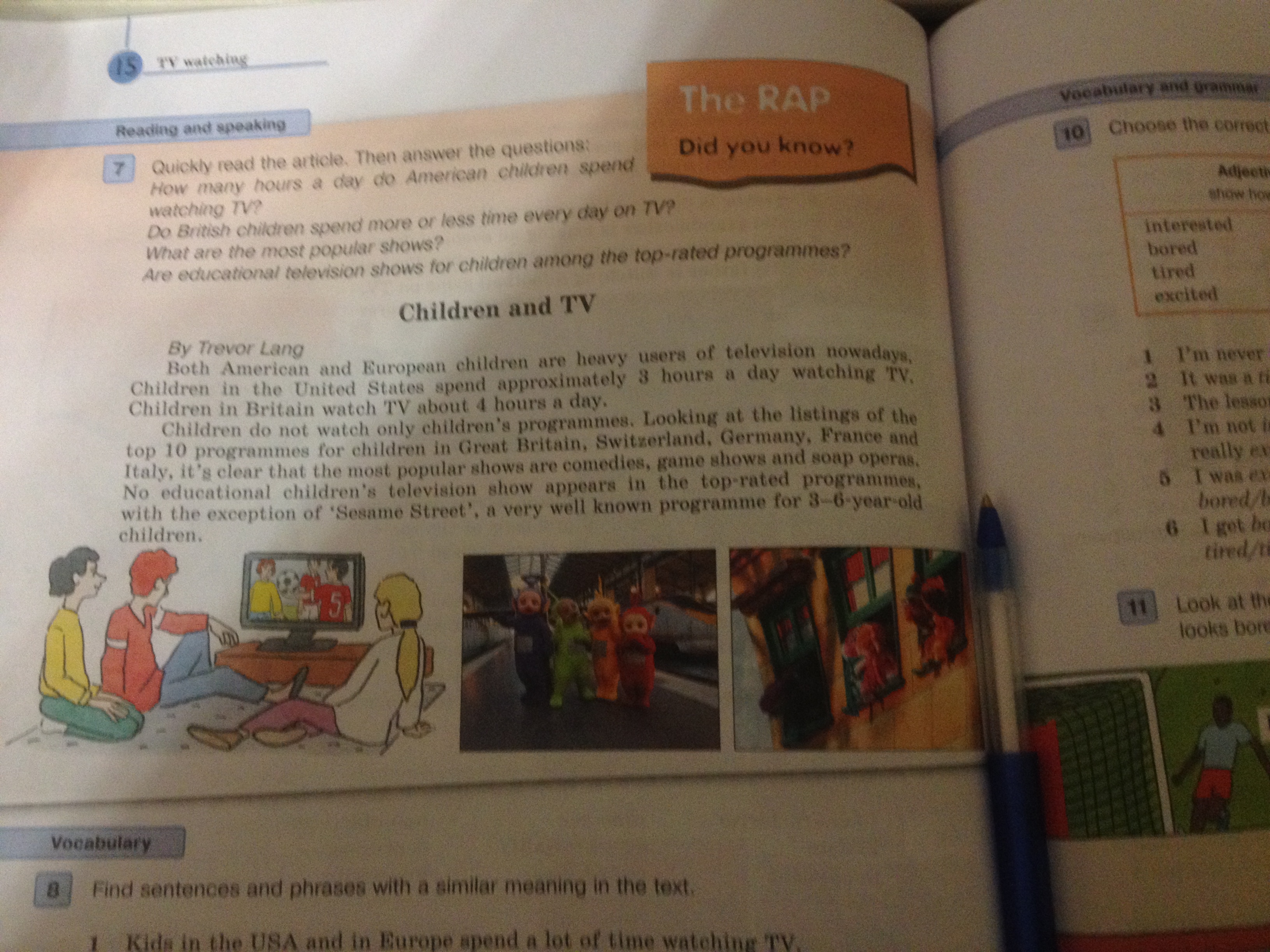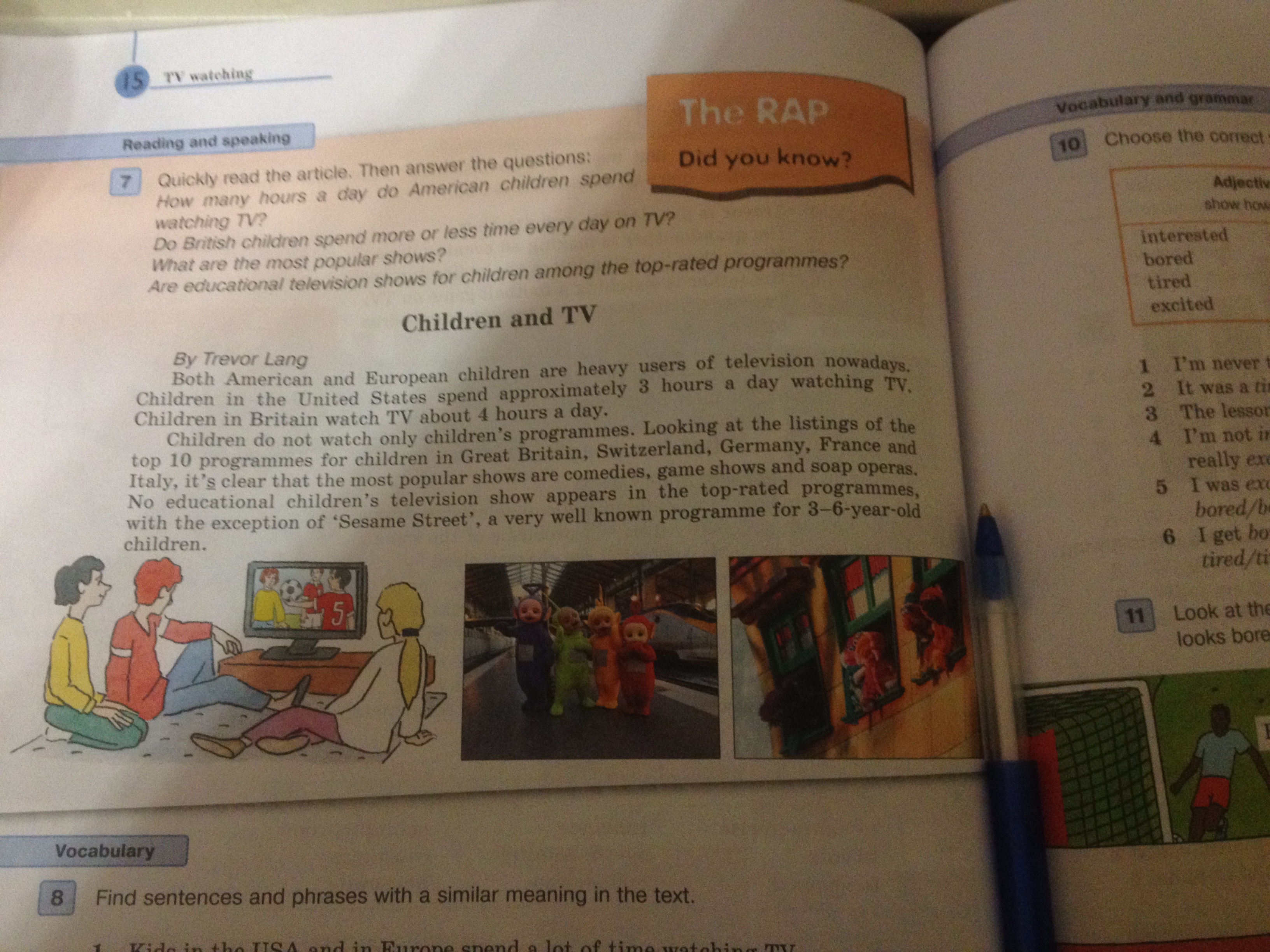 И американские и европейские дети являются активными пользователями телевидения в наши дни. Дети в Соединенных Штатах проводят около 3 часов в день перед телевизором. Дети в Великобритании смотрят телевизор около 4 часов в день.