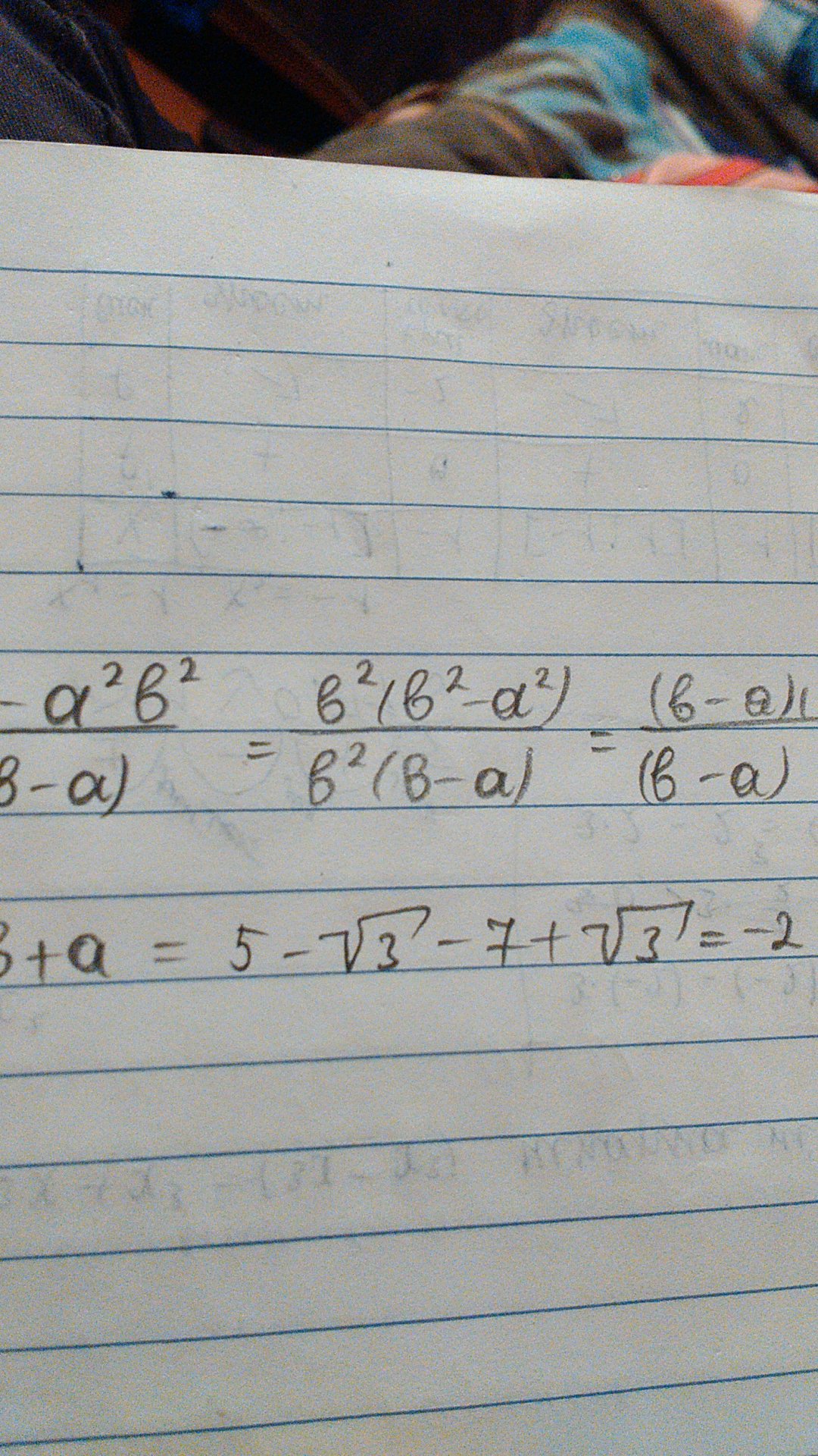 b^4-a^2b^2/b^2(b-a)=b^2(b^2-a^2)/b^2(b-a)=(b-a)(b+a)/(b-a)=b+a= -2