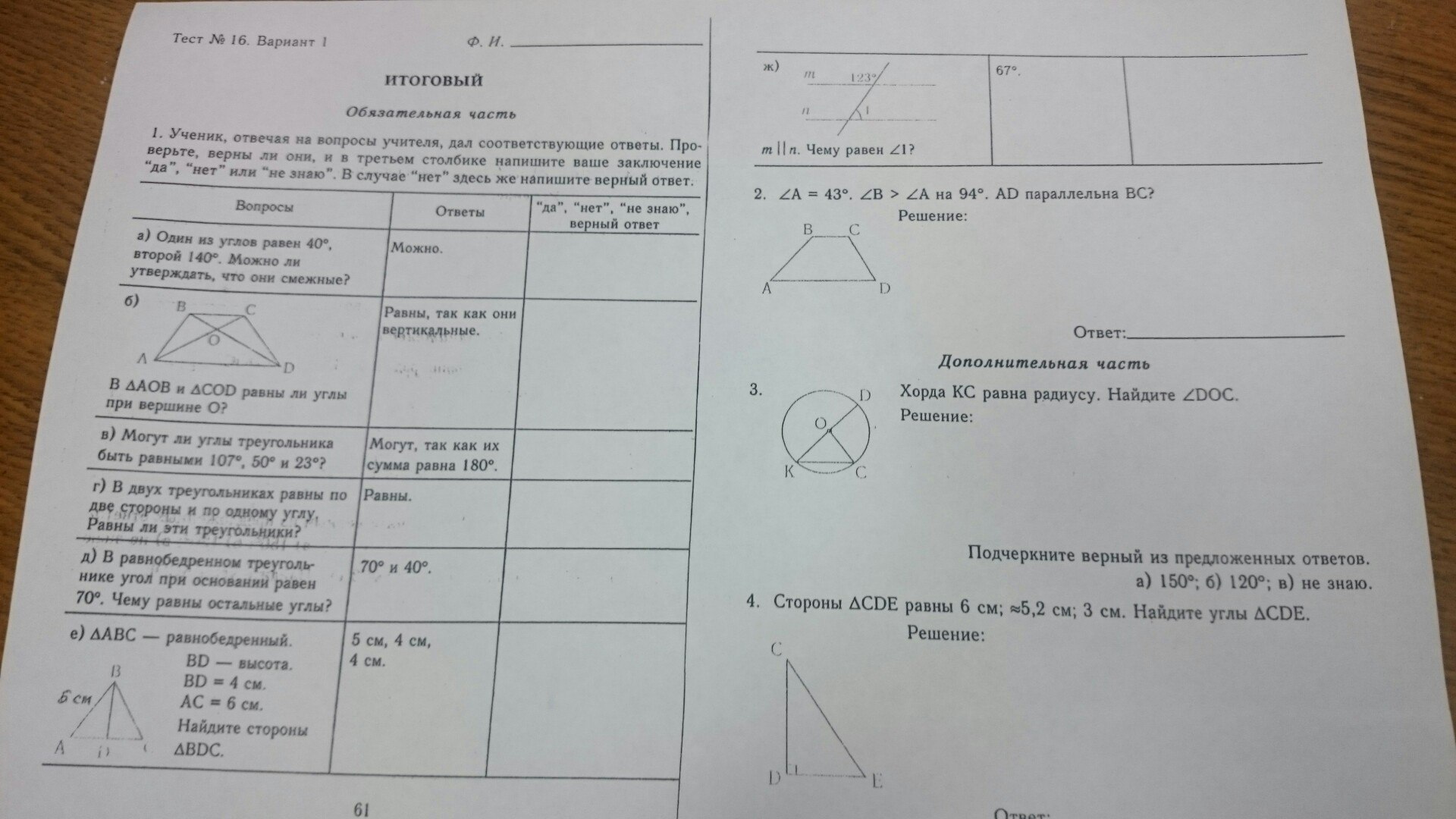 ∠DOC = 180° - ∠KOC; ∠DOC = 180° - 60°; ∠DOC = 120°