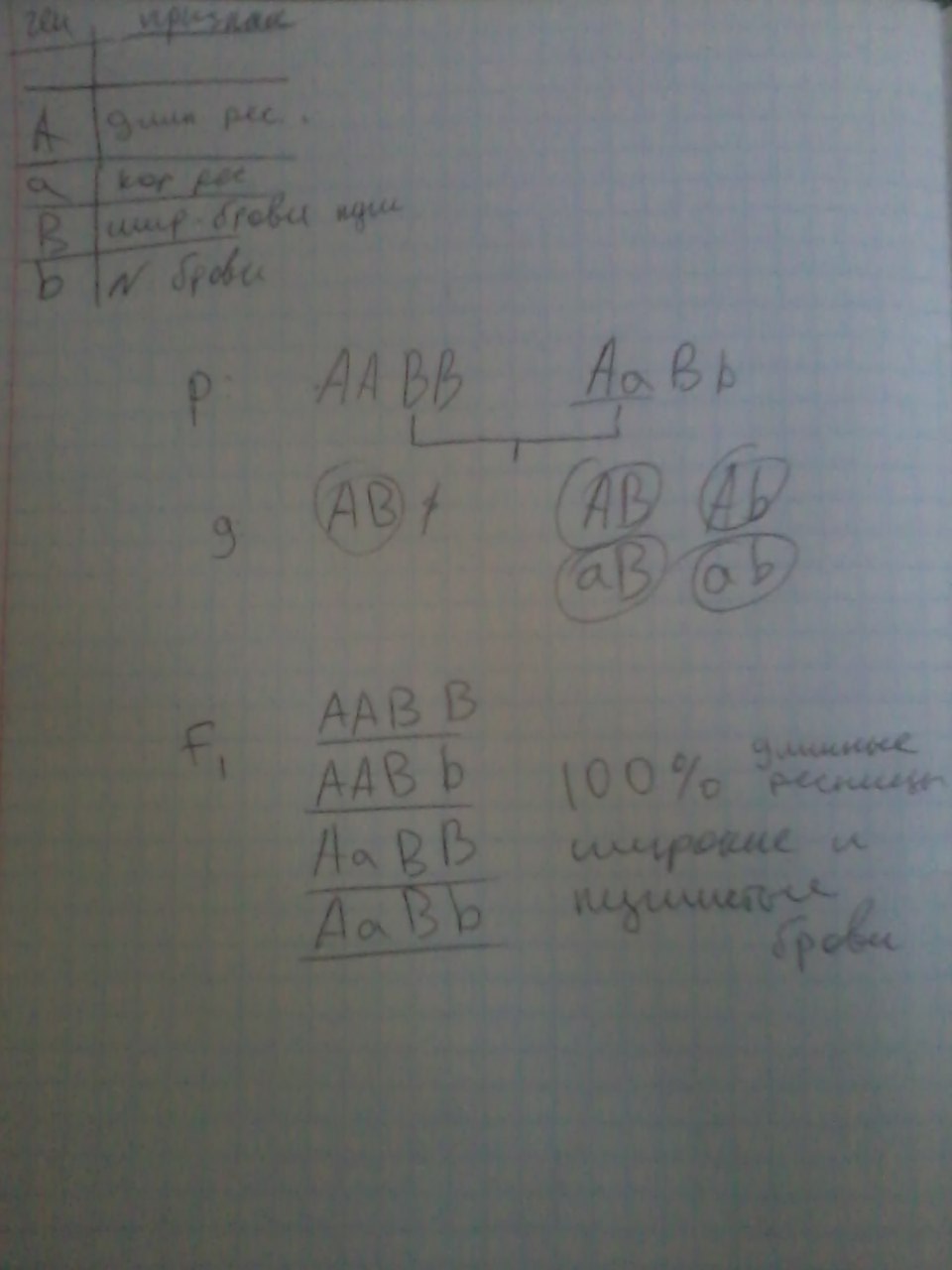 у человека ген длинных ресниц доминирует над геном коротких ресниц,а широкие пушистые брови над нормальными. женщина-с длинными ресницами и длинными пушистыми бровями,у отца,который были нормальные ресницы и нормальные брови замужем за мужчиной с доминантными признаками гомозигот.по обеим аллелям. опредилить генотипы родителей и фенотипы и генотипы возможного потомства.