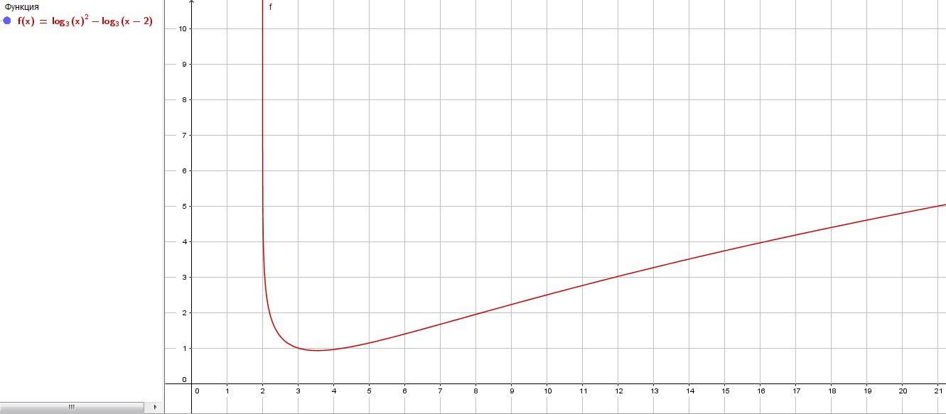 (Логарифм в квадрате x по основанию 3 минус логарифм (x-2) по основанию 3 больше 0)