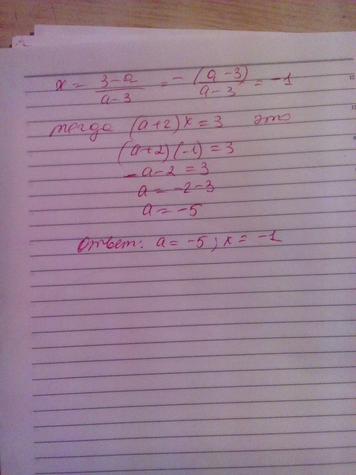 сначала найти х, потом а