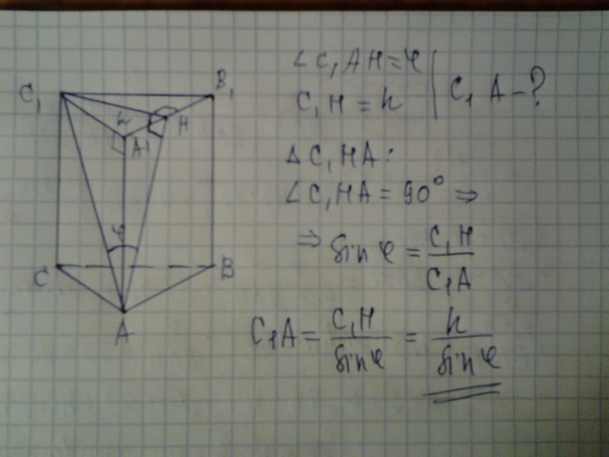Применены:признак перпендикулярности прямой к плоскости, определение угла между прямой и плоскостью, определение синуса