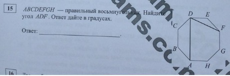 Теперь найдем нужный нам угол ADF. Он является часть угла D, а значит легко находится по формуле ADF=D-CDA-EDF=135-45-22.5=67.5